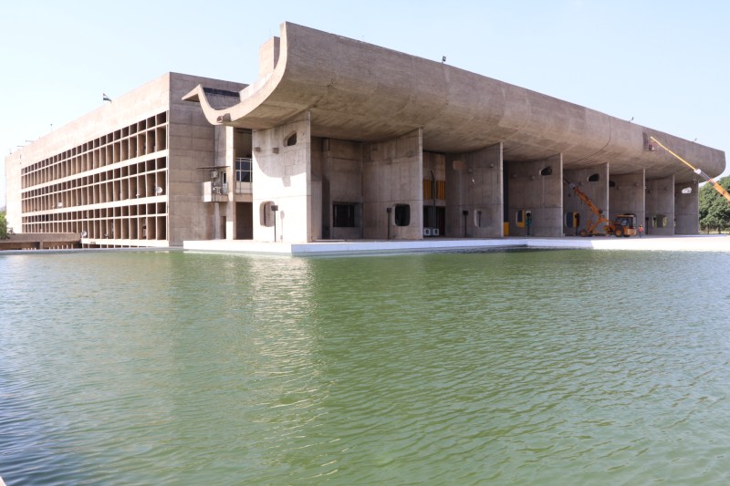 The palace of assembly houses legislatures of Punjab and Haryana. Water body in the foreground creates an interesting interaction with the raw surfaces of brute concrete. The sheer scale of this building is awe inspiring. Since the Punjab assembly was not in session we were taken inside the house. Photography is not allowed inside … It was interesting to see noise absorbing sheets creating interesting patterns on walls and the roof ( I am sure they functionally control the chaotic noise in the legislative house)