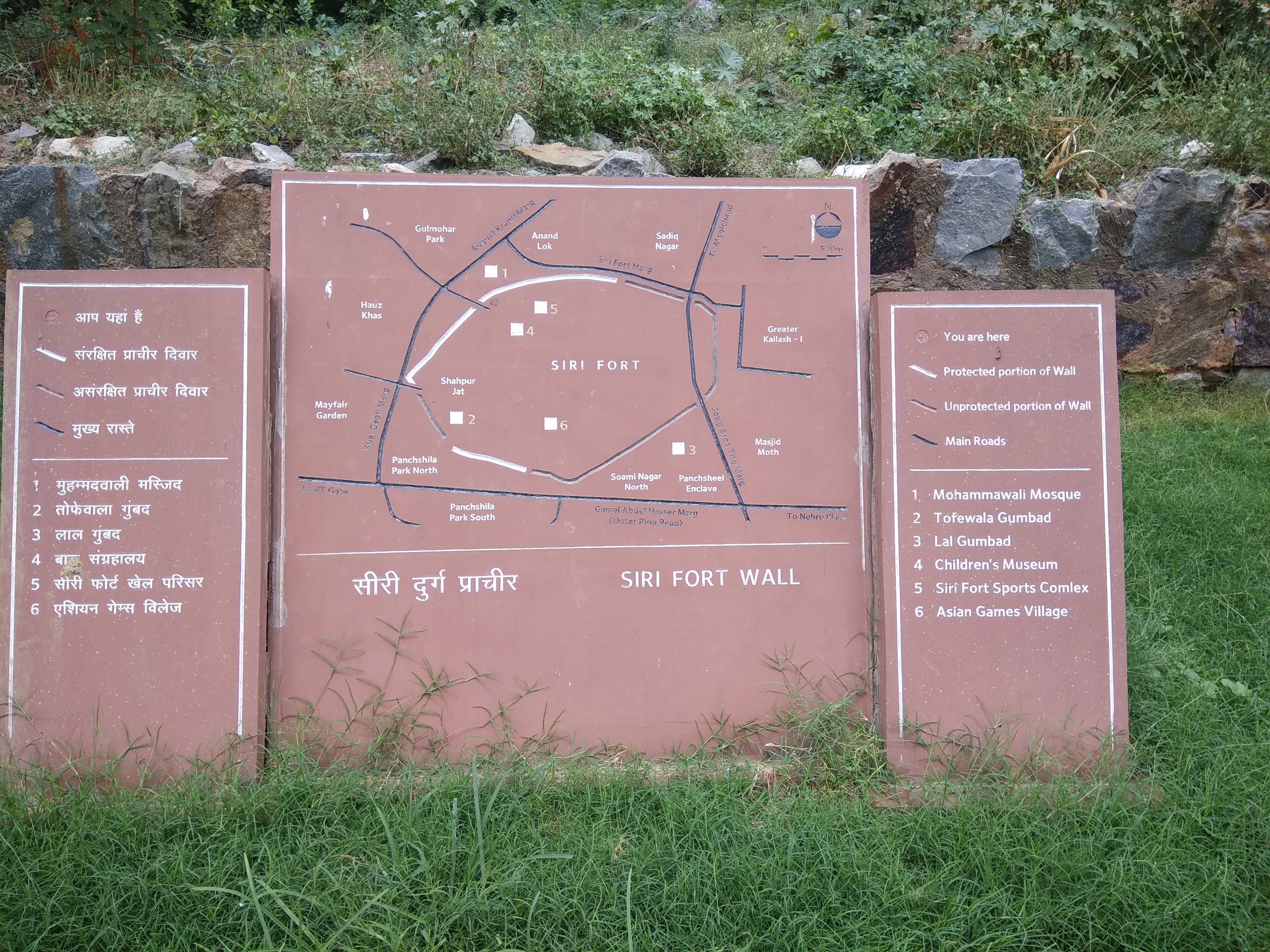 सिरीच्या तटबंदीचा अजून एक सलग भाग पंचशील पार्कच्या दुसऱ्या टोकाला पुरातत्व सर्वेक्षणाच्या लहान मुलांच्या संग्रहालयाजवळ दिसतो. इथल्या भिंती पडलेल्या असल्या आणि उंच नसल्या तरीही तटबंदीचा तलविन्यास आणि दगडी बांधकामाची पद्धत समजून घ्यायला इथं निरीक्षण करणे उपयुक्त ठरते.