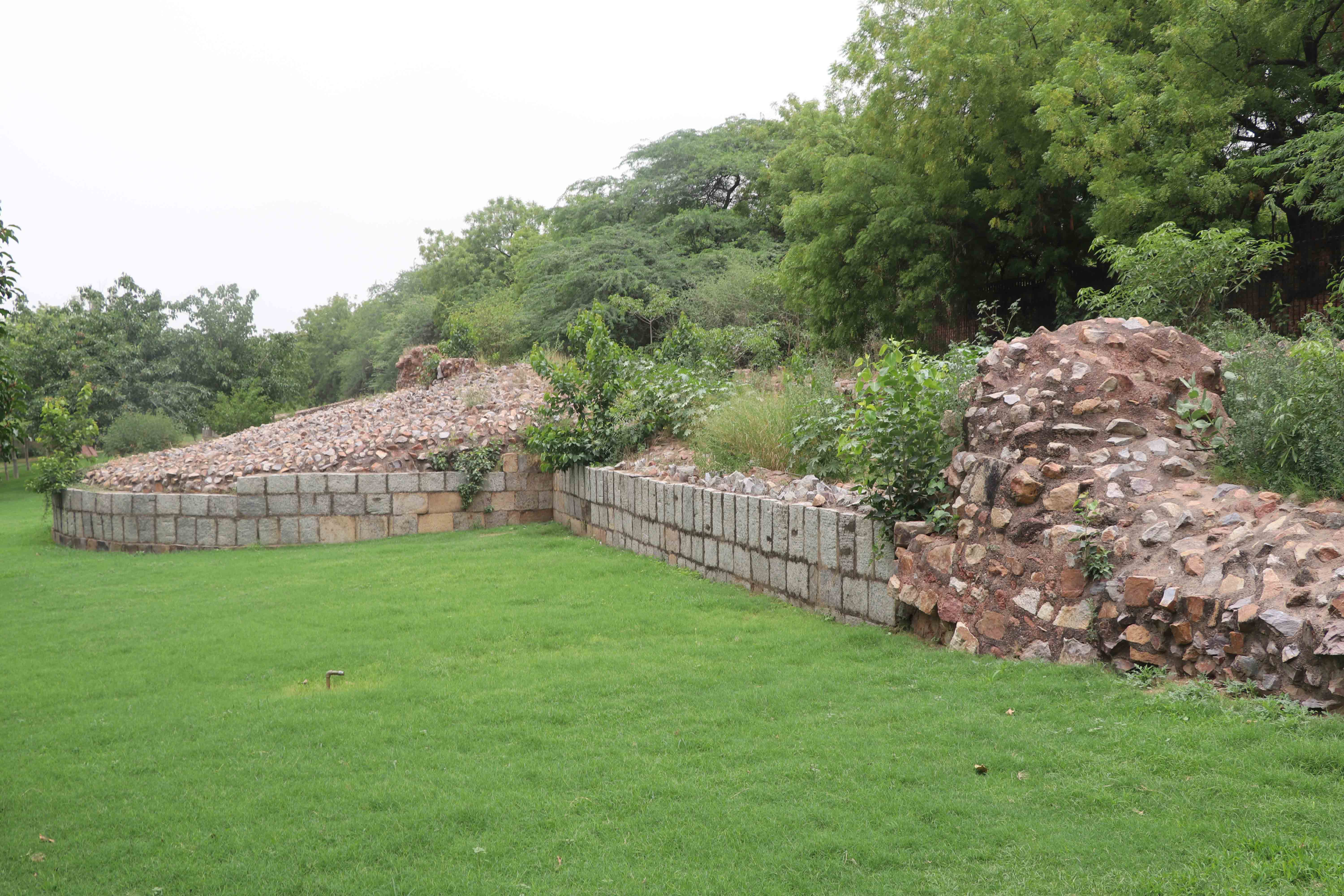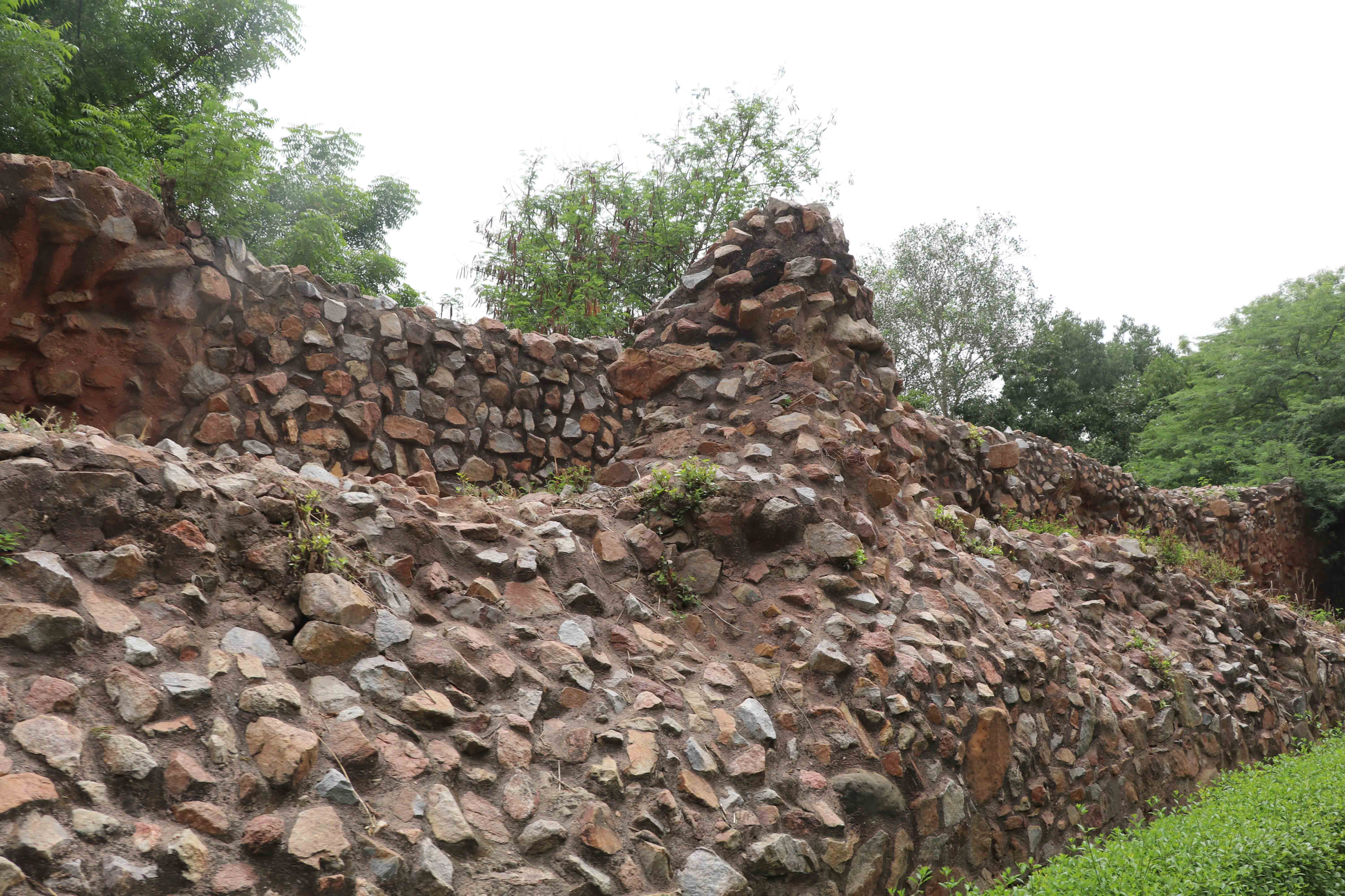 या किल्ल्याच्या भिंतींचे विस्तृत बांधकाम पंचशील पार्क जवळ पाहता येते. हे एका कुंपण घातलेल्या बागेत बंदिस्त असून स्टेप बाय स्टेप नर्सरीच्या बाजूने तिथं प्रवेश करता येतो. उंच दगडी बांधकाम आणि सैनिक हत्यारे नेऊ शकतील व किल्ल्याचा बचाव करू शकतील इतकं रुंदही. बुरुजांना तीर मारण्यासाठी व शत्रूवर हल्ला करता यावा म्हणून जंग्याही होत्या. वेगवेगळ्या आकाराच्या दगडांना एकमेकांवर रचून आणि मध्ये जोडणी करणारं दगडमातीचं मिश्रण करून या भिंती बांधल्या गेल्या. मंगोल आक्रमकांना खिलजीने अनेकदा पराभूत केलं. पुढे तुघलक काळात दिल्लीत आलेल्या तैमूरने या तटबंदीचे आणि दुर्गातील इमारतींचे कौतुक केलेले दिसते.