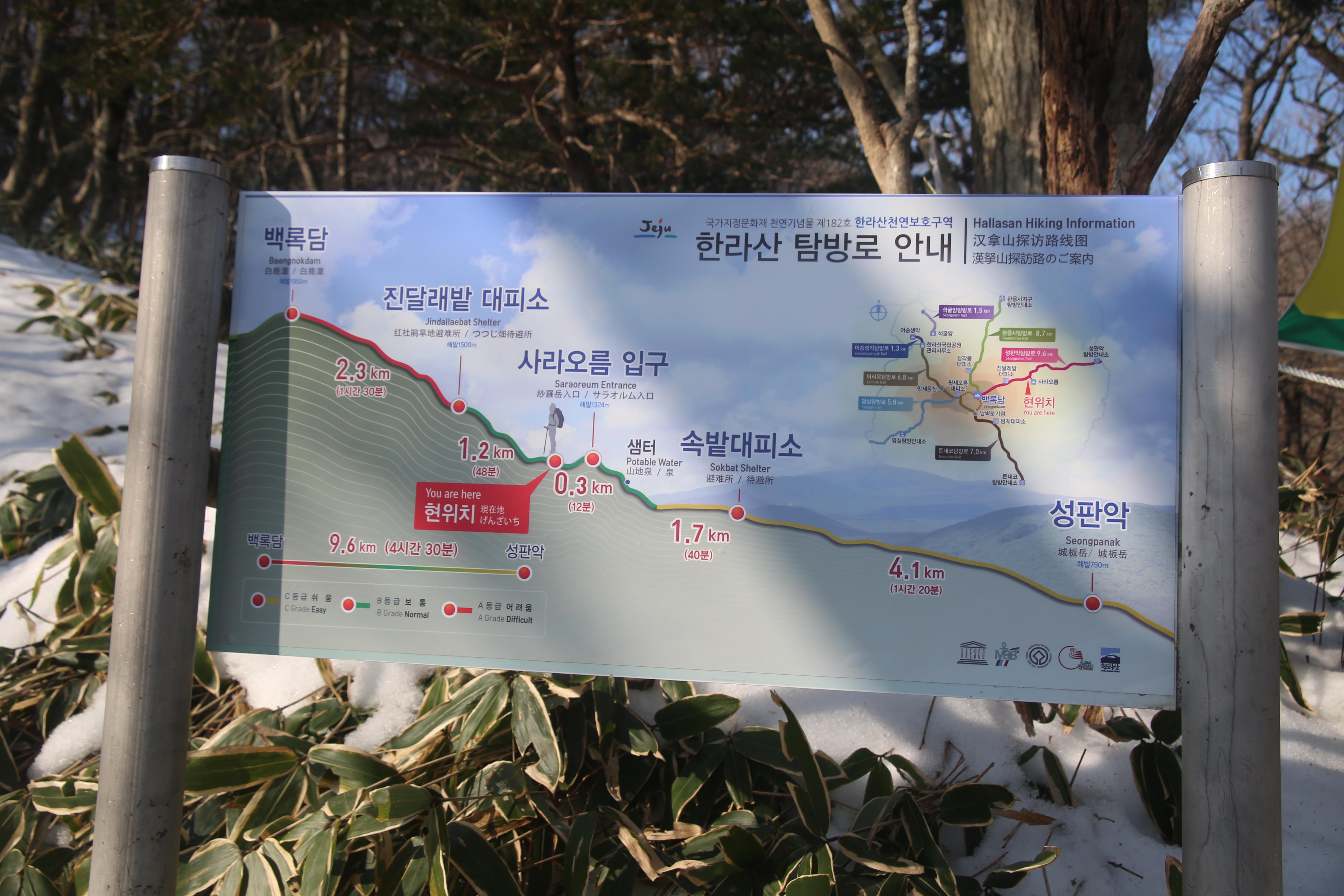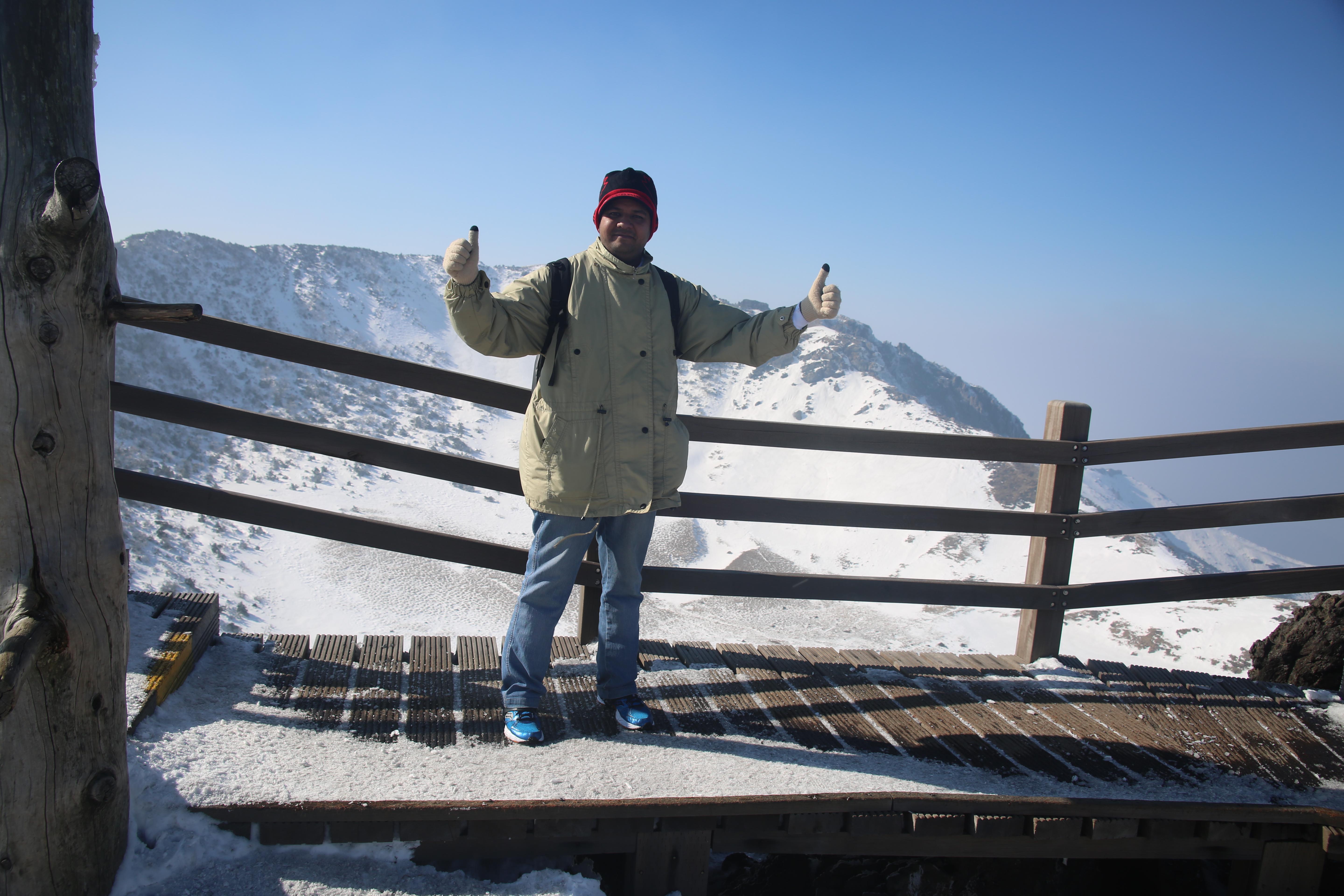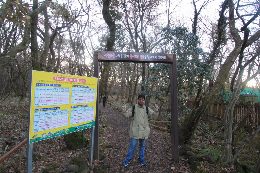 जेजूमध्ये मी एका युथ हॉस्टेलमध्ये राहिलो होतो. सकाळी लवकर उठून हाला पर्वत चढायला अलार्म लावला खरा पण उठायला उशीर झाला आणि बस चुकली होती. पुढची बस मिळून मी पर्वताच्या पायथ्याशी पोहोचलो खरा परंतु तोवर उशीर झाला होता. मी तिथं सकाळी सव्वासातला पोहोचणे अपेक्षित होते पण मला तिथं पोहोचायला नऊ वाजले. तिथं शिखरावर पर्यटकांनी गर्दी करून निसर्गाला हानी पोहोचू नये यासाठी नियम केला गेला आहे की कोणालाही वर राहता येत नाही. त्याच दिवशी परत खाली उतरून यावे लागते. आणि समजा अमुक एक वाजेपर्यंत तुम्ही ठराविक टप्पा जर ओलांडला नाहीत तर आल्या वाटेनेच परत धाडले जाते. मी पायथ्याच्या बोर्डवर पाहिले की १२ वाजायच्या आत मला तो टप्पा पार करणे अनिवार्य आहे .. बर्फाचा थर साचला होताच तिथं.. माझ्याकडे गरम कपडे तर होते पण बर्फातून डोंगर चढण्याचा पहिलाच अनुभव. मी एकटाच होतो आणि सकाळी उशीर झाल्याने चिडचिड झाली होतीच.. त्यामुळे १२ च्या आत अर्धी चढाई पूर्ण करणे अशक्य वाटायला लागले आणि मी बेत रहित करण्याच्या मनस्थितीत होतो. पण क्षणभर विचार केला की पुन्हा आयुष्यात कधी इथं जेजू बेटावर येण्याची संधी मिळेल न मिळेल.. चढून पाहू.. वेळेत नाही पोहोचलो तर काही तास वाया जातील इतकेच. आणि मी सीयॉन्गपनाक या मार्गाने चढू लागलो.