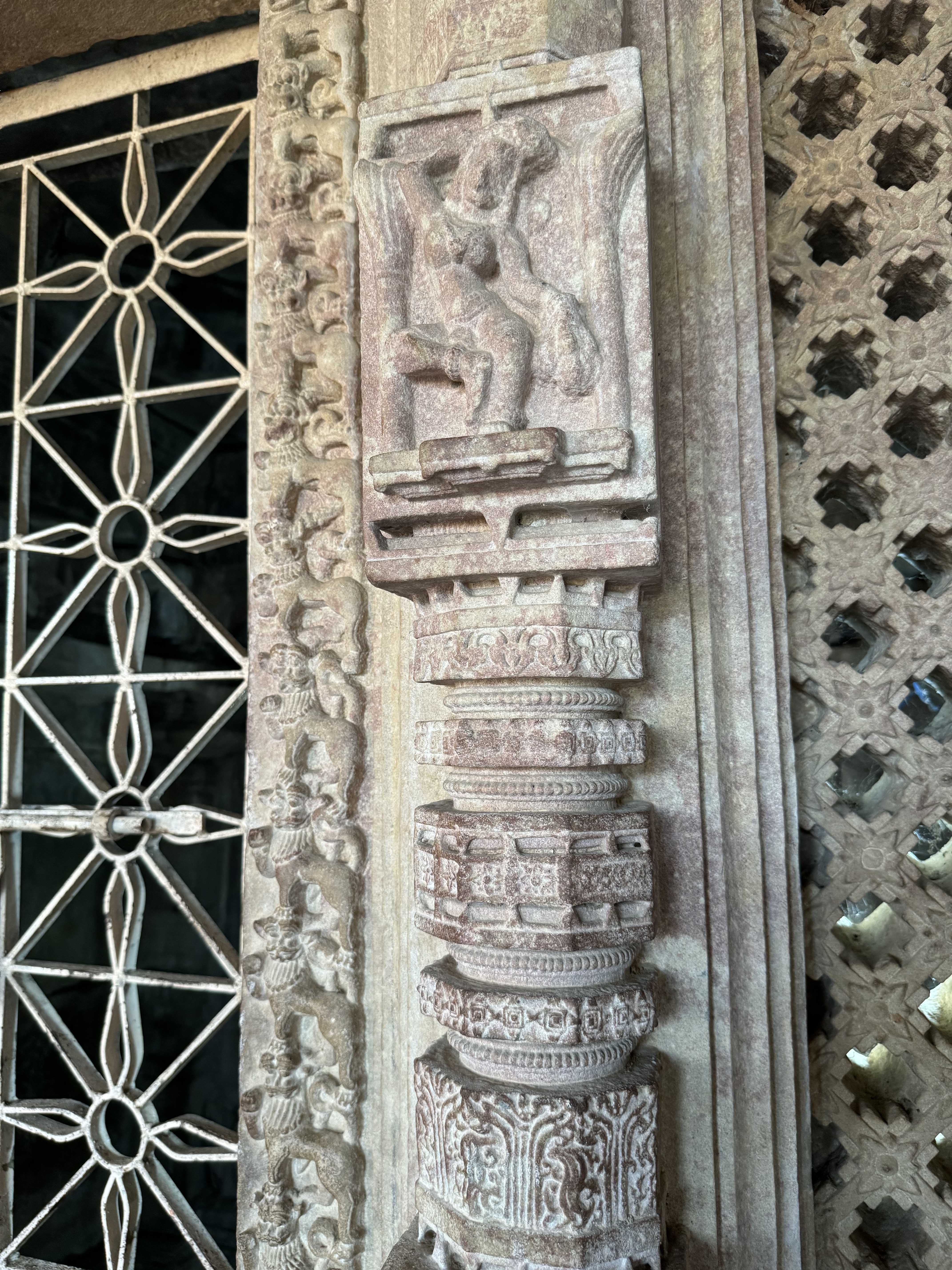 Door frames and grills also include intriguing designs. One of the most notable aspects of this temple’s visual design is how well it merges in with its natural surroundings.